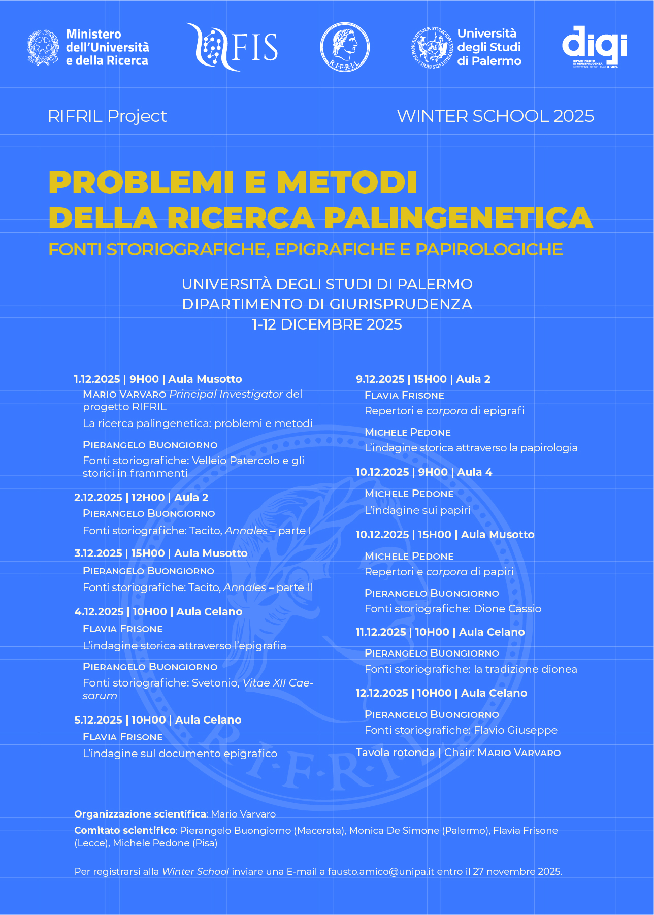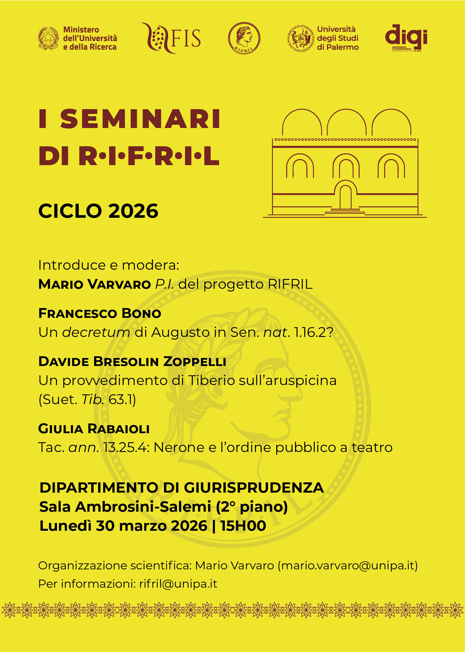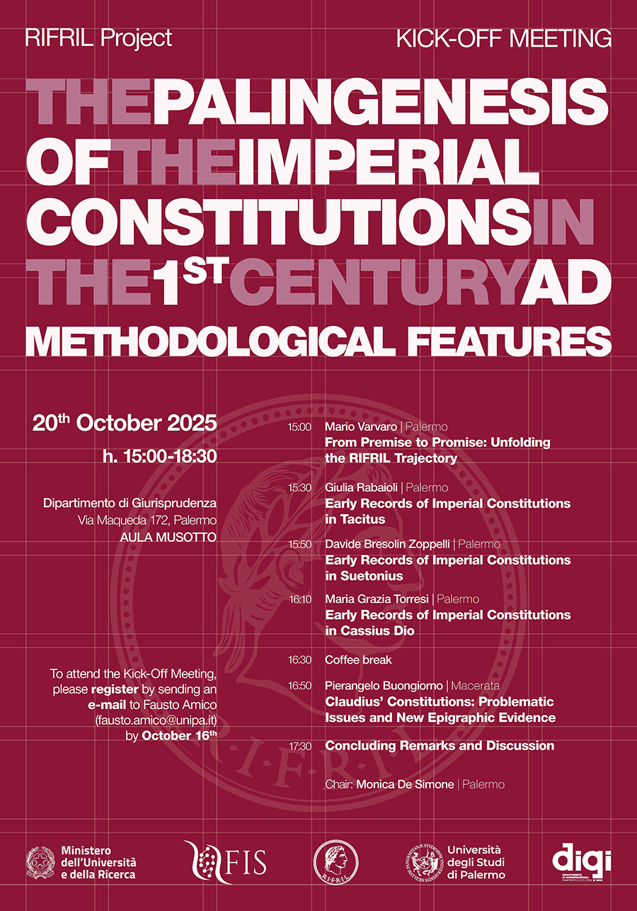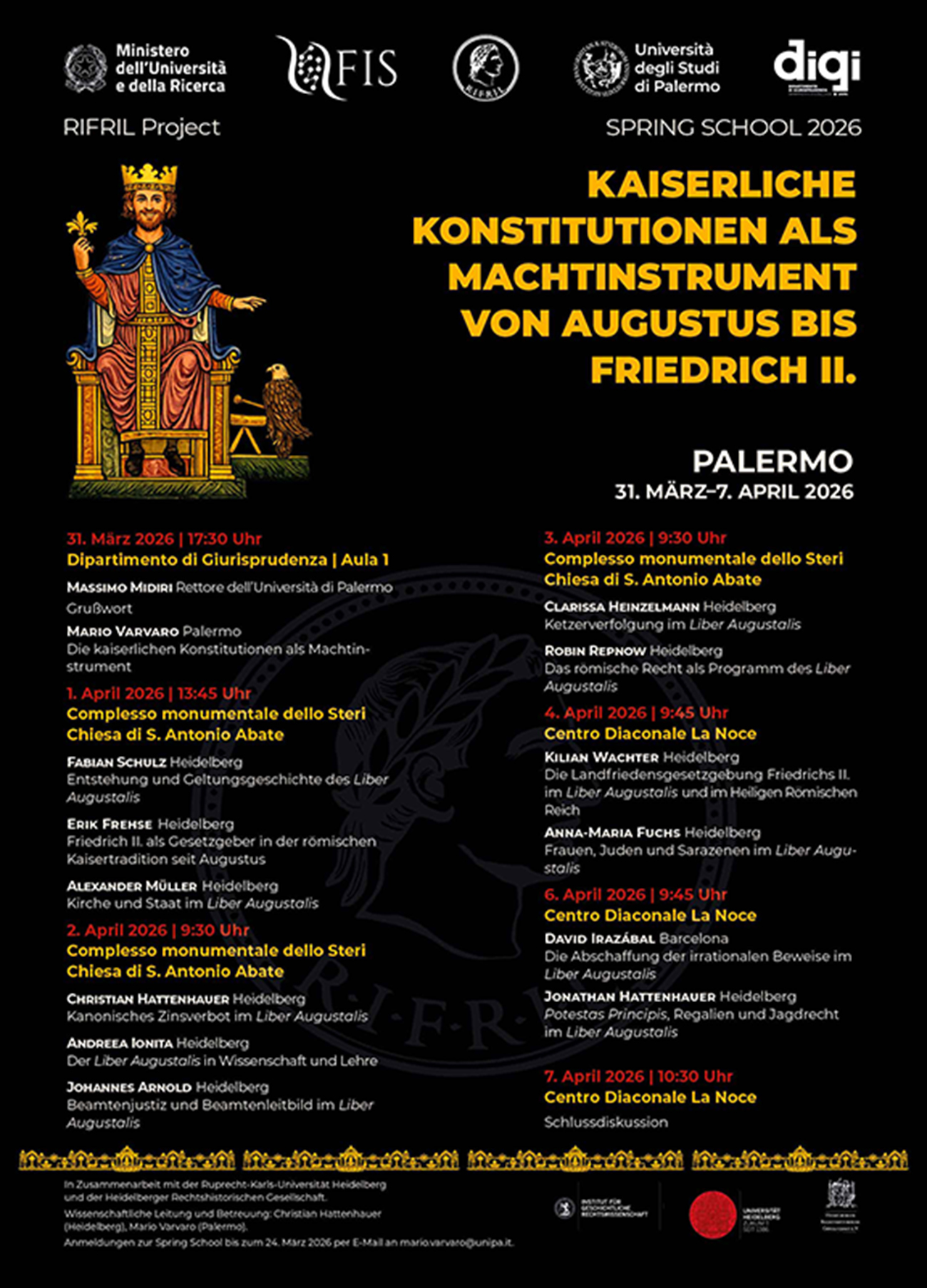 Spring School RIFRIL 2026: “Le costituzioni imperiali come strumento di potere da Augusto a Federico II”