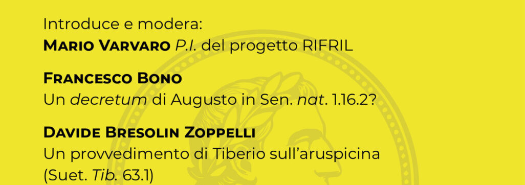 Lunedì 30 marzo 2026, ore 15.00, comincia nella Sala Ambrosini‑Salemi del Dipartimento di Giurisprudenza dell’Università degli Studi di Palermo un ciclo di incontri dal taglio seminariale dedicato alle ricerche del progetto RIFRIL – Reconstructing and Investigating the First Roman Imperial Legislation. Durante i seminari, i componenti del gruppo di ricerca di RIFRIL presenteranno e discuteranno nuovi risultati sullo studio delle costituzioni imperiali emanate tra Augusto e Nerva, attraverso l’analisi di fonti giuridiche e letterarie che ne conservano ancora traccia.